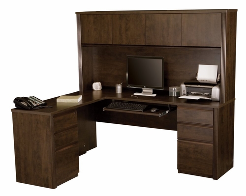 L-Shaped Desk and Hutch in Chocolate - Prestige Plus - Bestar Office Furniture - 99852-69